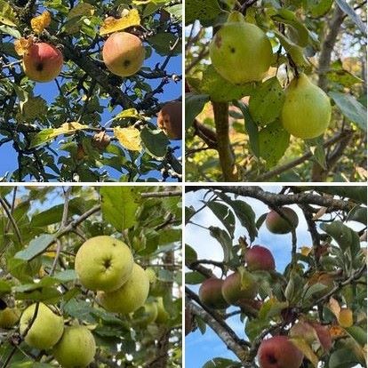 Während die Kirschen und Zwetschgen schon früher im Jahr geerntet wurden, finden Sie jetzt noch Äpfel, Birnen und zum späteren Zeitpunkt werden Sie auch die Quitten und Walnüsse noch ernten können.