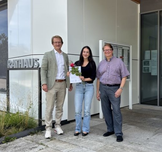 Foto v.l.: Erster Bürgermeister Sebastian Thaler, Valeria Sandner, Zweiter Bürgermeister Axel Reiß