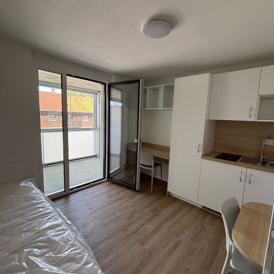 Nach 2 Jahren Bauzeit konnten die ersten Wohnungen bereits bezogen werden. Entstanden sind auf einer Wohnfläche von ca. 1.750 qm 85 vollmöblierte Wohneinheiten von denen 50 % für studentisches Wohnen gewidmet sind. Die einzelnen Wohnungsgrößen liegen zwischen 20-35 qm. Zur Ausstattung gehören rund 60 unterirdische Stellplätze und eine Vielzahl an Fahrradabstellplätzen. Die Wohnanlage bietet zudem einen Gemeinschaftsraum sowie einen Waschraum mit Waschmaschinen zur kostenfreien Nutzung. Darüber hinaus ist jeder Wohneinheit ein eigenes Kellerabteil zugeordnet.