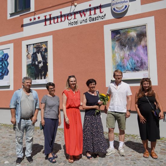 Foto v.l.n.r.: Rudolf Grosch, Mona Tenorth, Daria Lepkova, Sybille Schmidtchen (KulturForum Eching e.V), Bürgermeister Sebastian Thaler und Alina Braun