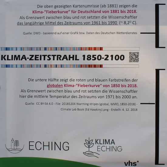 In Eching wurde der Klima-Zeitstrahl auf Initiative des Klimabeirat-Mitglieds Johannes Breitenbach durch die Gemeinde beschafft und bereits beim diesjährigen Echinger Klimafrühling präsentiert.
